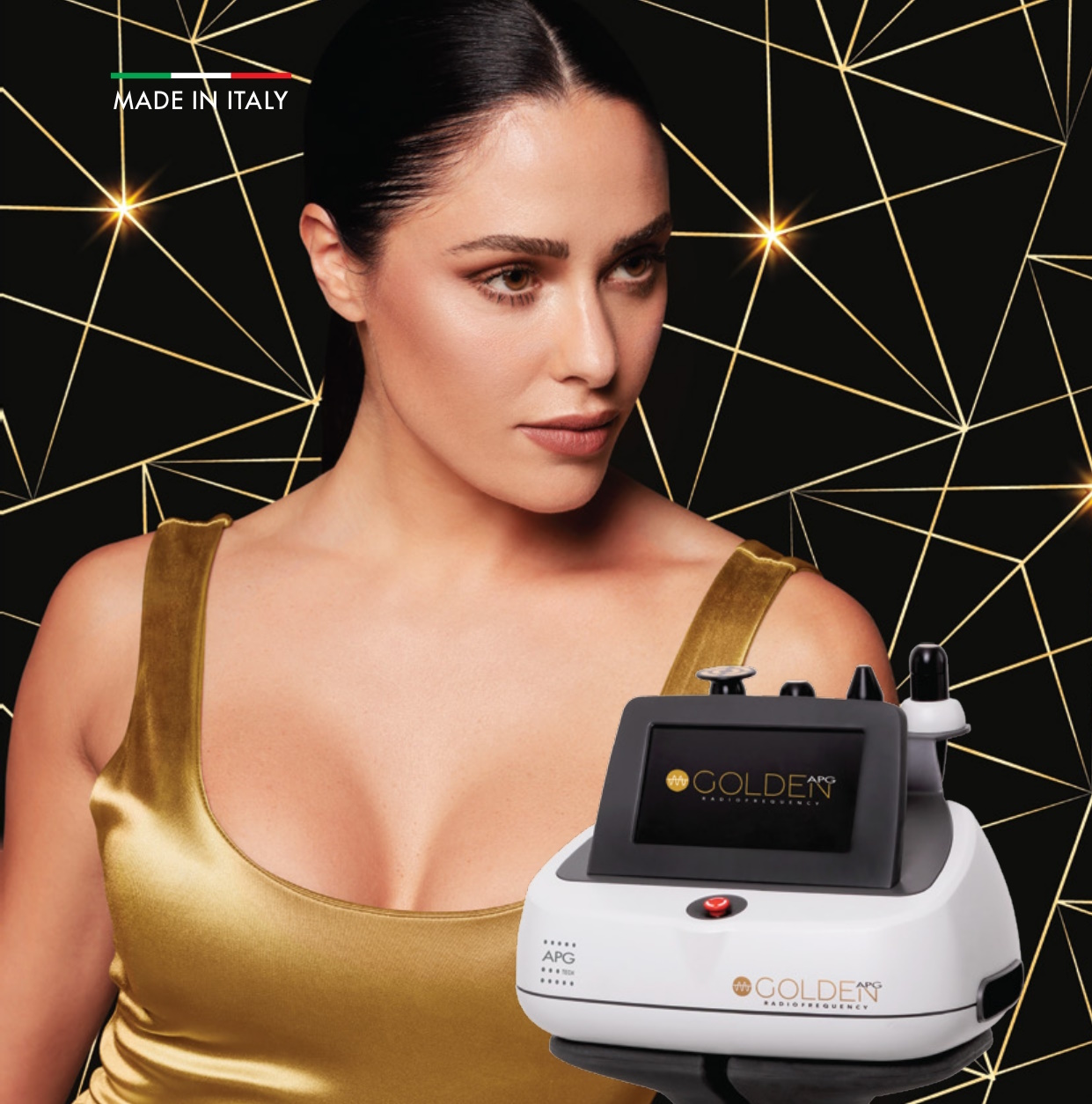 Мултиполярна радиочестота идеална за лице и тяло. Накрайниците GoldenAPG са покрити със злато, което е биосъвместим материал с много висока трансемисионна способност, което е устойчиво на окислителни явления.
